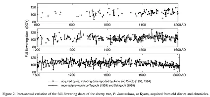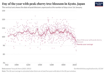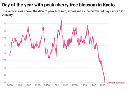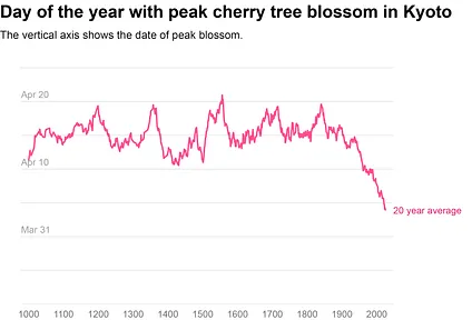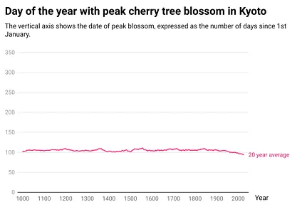 Thereās a trade-off between zooming out and not showing meaningful changes. Thereās nothing intrinsically correct about displaying the full year ā especially if itās not actually relevant for cherry blossoming; perhaps they wouldnāt flower at all if the climate changed substantially.